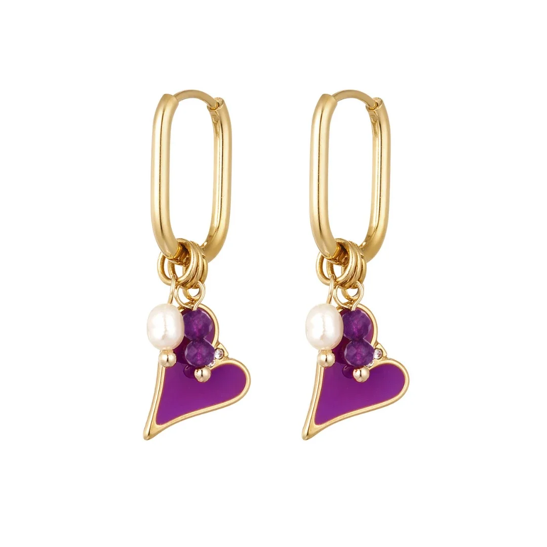 TikTok Oorbellen Hart met Parel - Goud/Paars